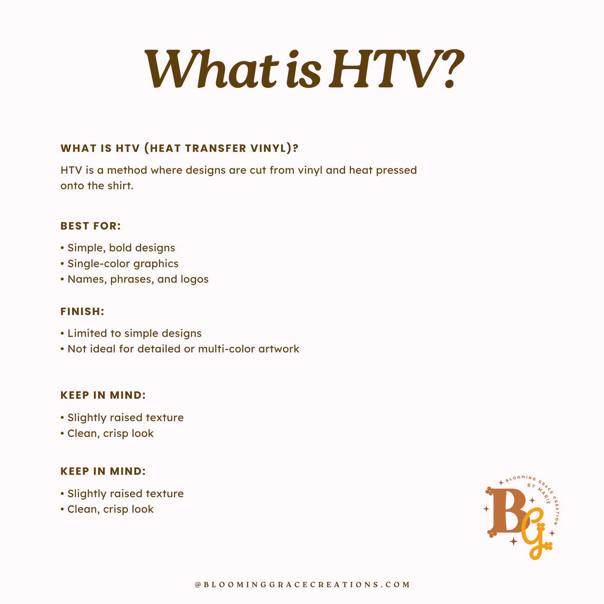 • HTV is best for simple, single-color designs